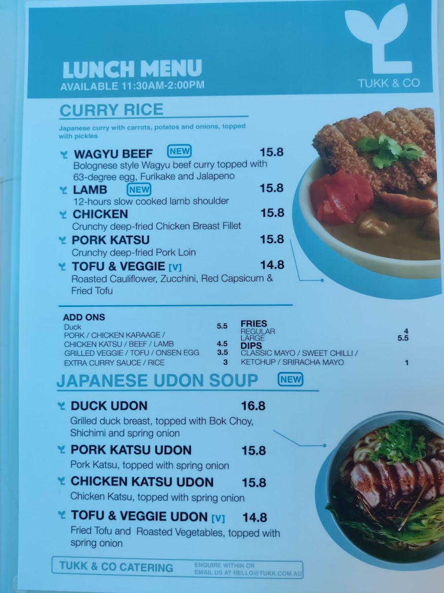 If you're in the mood for something heartier, the café also serves up tantalizing Curry Rice, with options like Wagyu Beef, Lamb, Chicken, and Tofu & Veggie, each priced at A$16.80 or A$15.80 respectively. The curry drapes over fluffy rice, blending perfectly to enhance each bite. Customers rave about the incredible taste and variety, as highlighted by Rosemarie Villas, who calls Tukk and Co her “goto lunch spot” for the consistently outstanding food and friendly service.